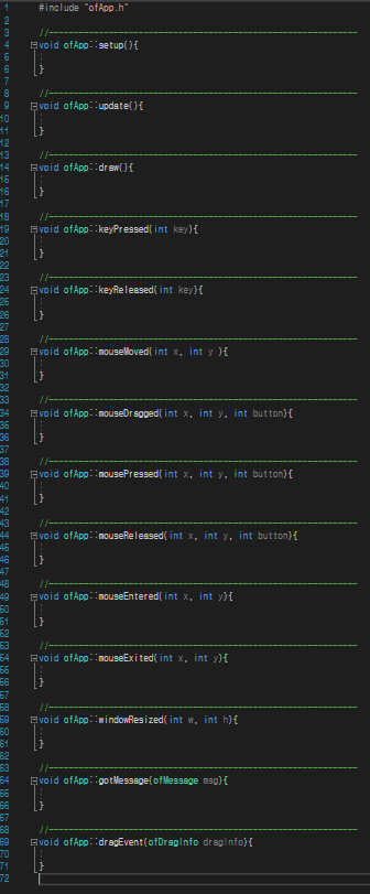이렇게 길게 생긴 ofApp.cpp가 생성될 겁니다