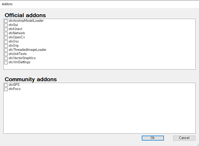 addons : openFrameWorks의 다양한 추가 기능들이 있는 폴더